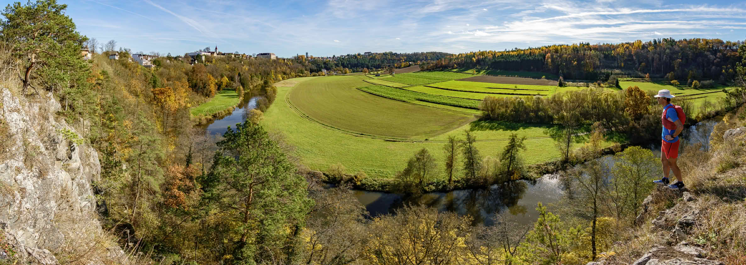 Výhled do údolí řeky Thaya (Dyje) na město Drosendorf (Drozdovice) ze skály Julienhöhe